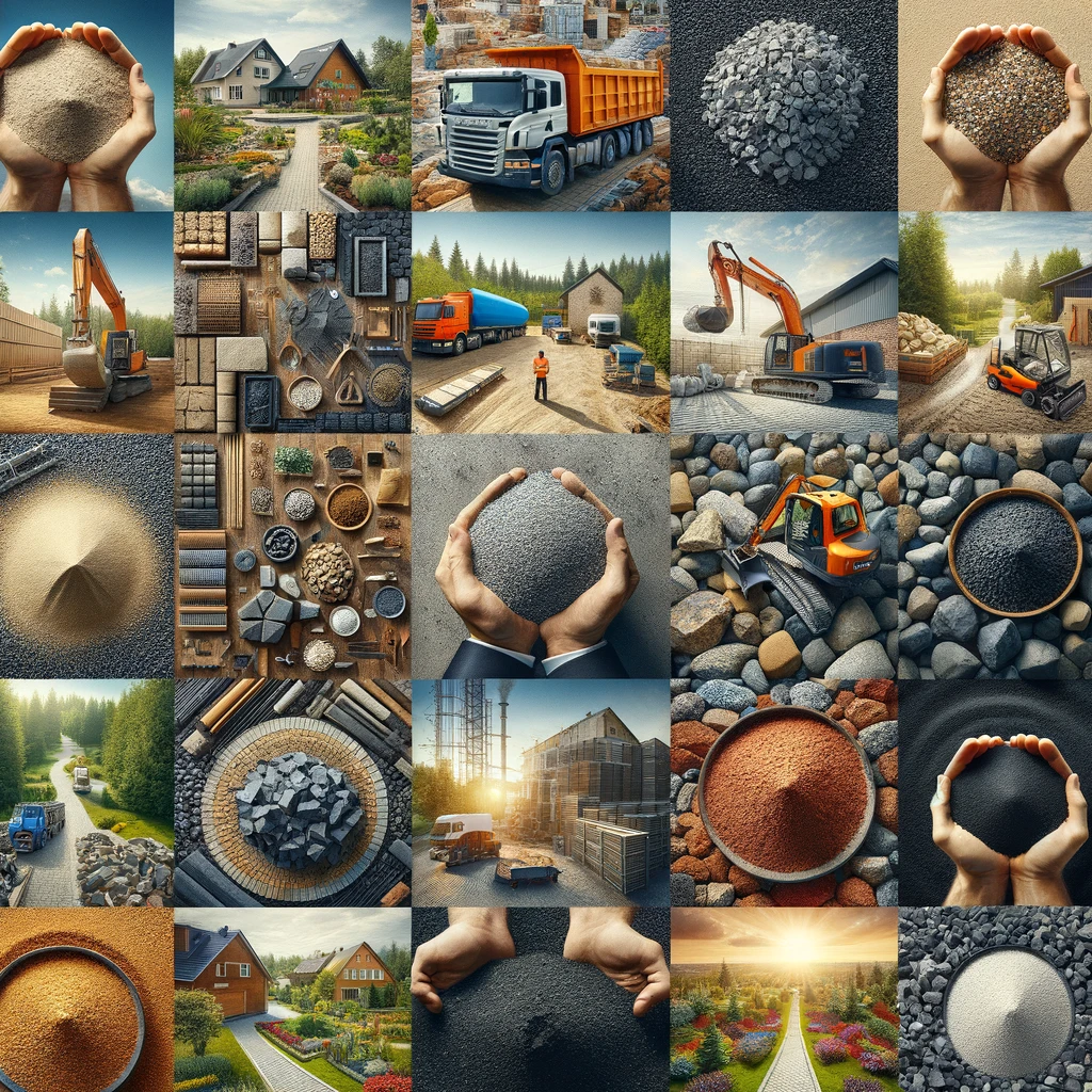 • Smėlį: Būtinas bet kurio statybos projekto pagrindas, idealus betonui ir mūrui. Plautas ir sijotas smėlis, taip pat paplūdimio smėlis ir t.t